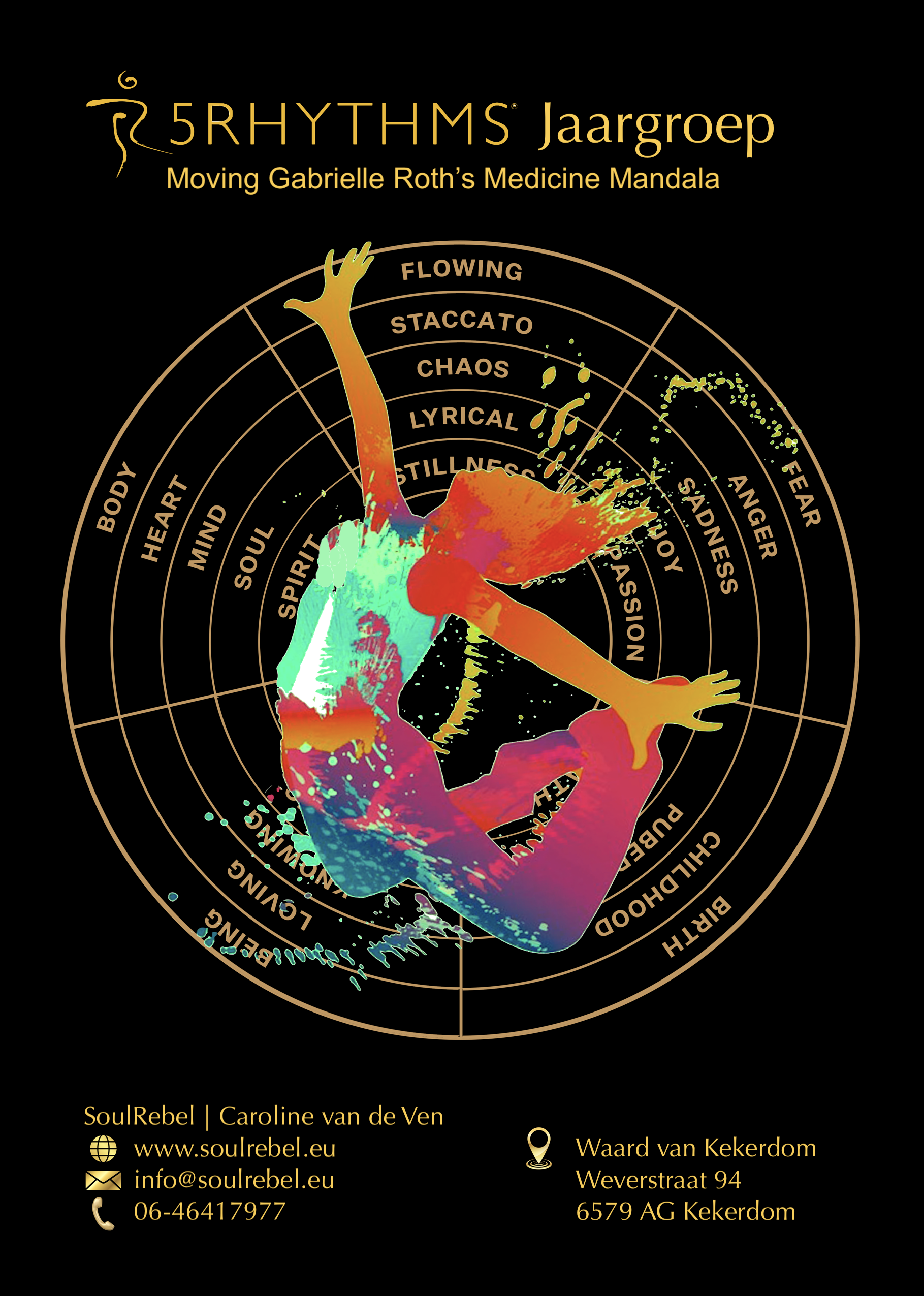 Gabrielle Roth, de moeder van de 5Ritmes zei: “Movement is my medicine, my meditation, my metaphor and my method, a living language we can rely upon to tell us the truth about who we are, who we are with, and where we are going. There is no dogma in the dance.”