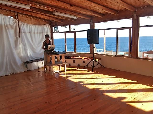For this workshop 16 beautiful dancers showed up, coming from 6 different countries, Greek movers from the isle, from other islands, from Athens or elsewhere from the mainland among them. A colourful mixture of eager people; the youngest in her twenties, the eldest in her seventies; two men only, counting for ten though, considering the way they held male energy during this workshop.