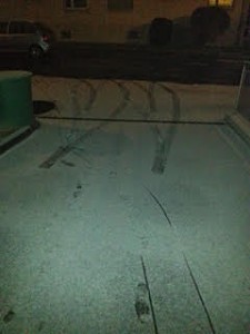 Toen we aankwamen bij onze slaapplek lag er al een beetje sneeuw en Evert toverde bij het keren van de auto op de oprit twee harten…. 🙂
